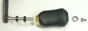 Basics: Daiwa and Shimano bait casters have the handles of the same 4mm diameter knob shaft, but 2.5mm difference in lengths. And, by adjusting the difference, you may install Shimano knobs onto Daiwa handles. Unfortunately, the vise-versa, Daiwa knobs on Shimano handles is not possible because of the dimension difference impossible to adjust.