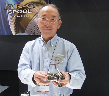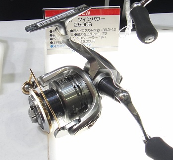 Mr. Matsumoto, a Shimano rep holds All new Twin Power 2500 spinning reel. The largest improvement was made at gear efficiency, and X-SHIP gear system is now employed to the reel. It is super smooth, even at high load. Its improved gear efficiency is apparent, and I realized it from a demonstration cranking the same load at spool. New Twin Power cranks with much less power than previous Twin Power. |