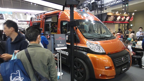 Jackall bass tournament transporter. Modified FIAT GT? Wheel fender and side panels are made of carbon. I don't think we need this big mobile house in small Japan, but I like it. It is equipped with bed, toilet, small kitchen, rod stocker, and etc. |
