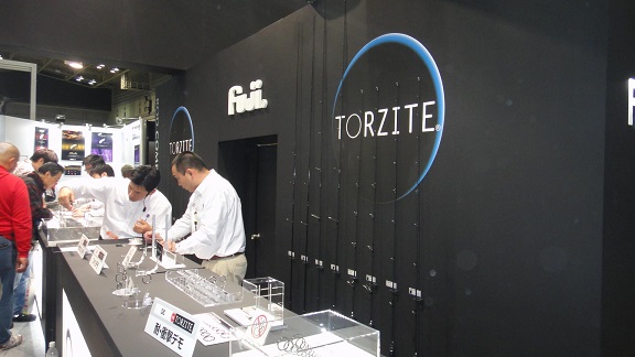 Fuji, guide and reel seat manufacturer, has invented a new ring material, Torzite. It is tougher than SIC for shock, and may be made thinner to make guides lighter. Fuji is the only manufacturer displaying guides at the show. Where is American Tackle or Chinese manufacturers, active at oversea shows?